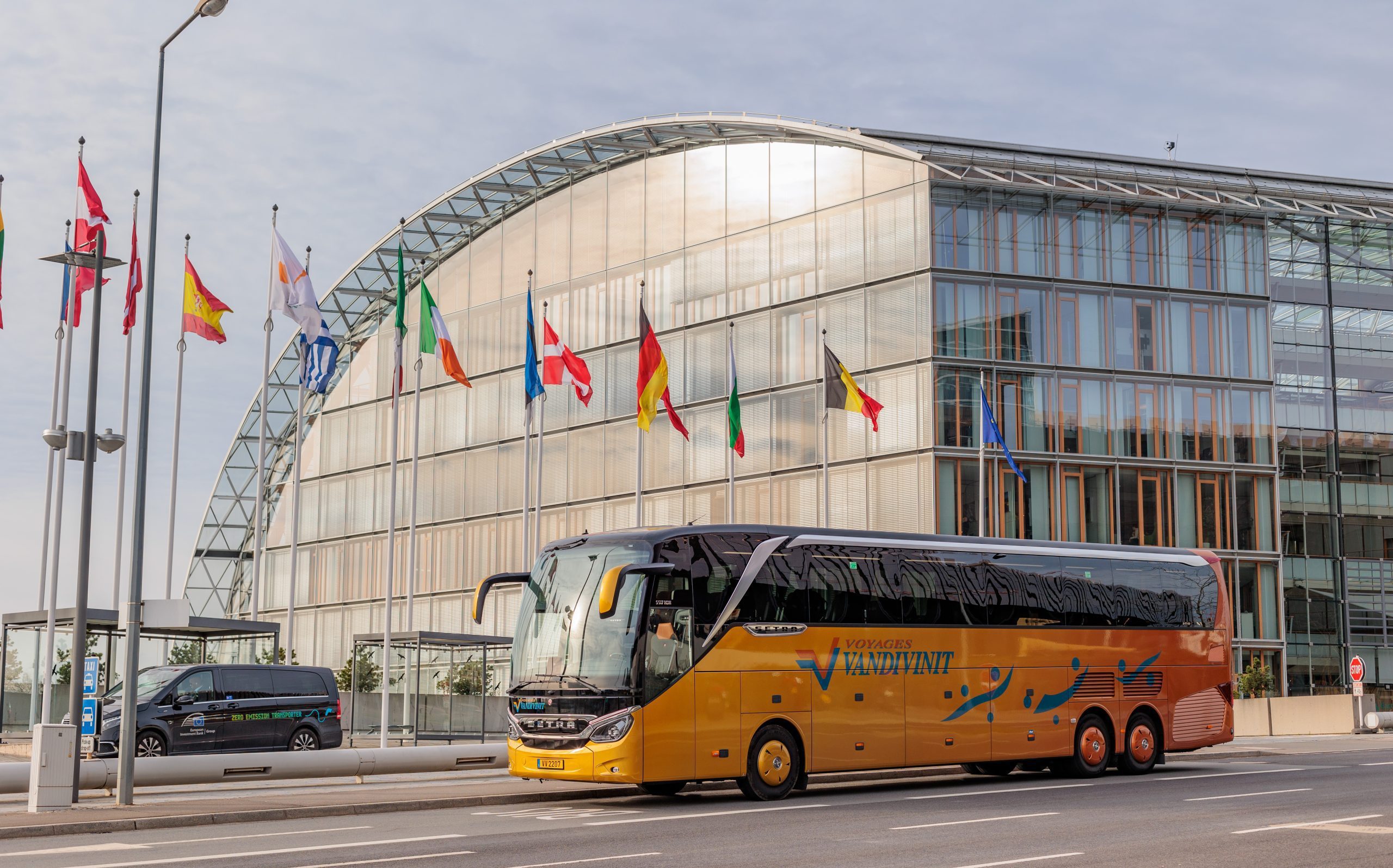 Transport dans un autocar moderne équipé de WC, vidéo, d’une prise USB individuelle et de la climatisation. Service de navette.