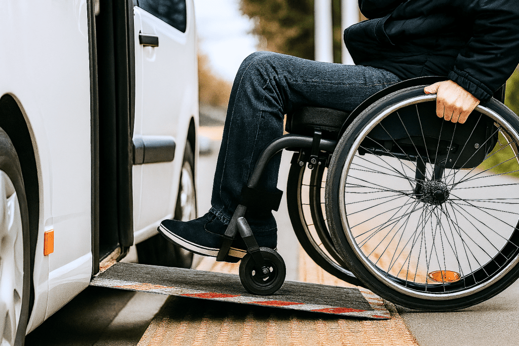 Unsere Fahrzeuge entsprechen den höchsten Sicherheitsstandards und sind vollständig barrierefrei ausgestattet – für einen komfortablen und inklusiven Fahrservice.