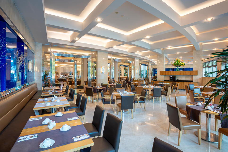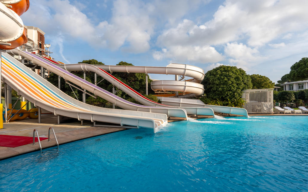 5 piscines (eau douce, dont chauffées : 2), dont piscine avec toboggans aquatiques, piscine couverte dans la zone wellness avec séparation pour enfants