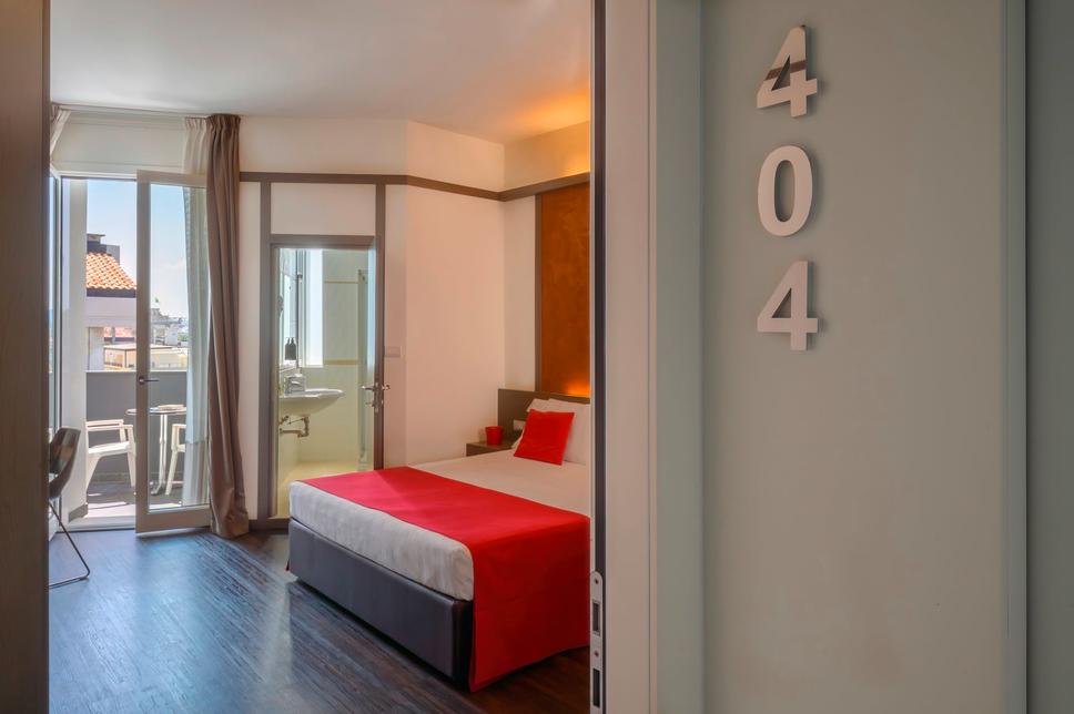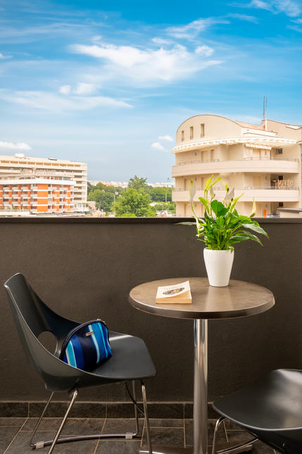 (env. 12 m²), 1 lit individuel, air conditionné, Wifi, coffre-fort*, petit réfrigérateur, sèche-cheveux, WC, bidet, balcon.