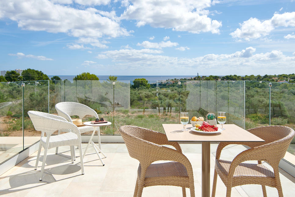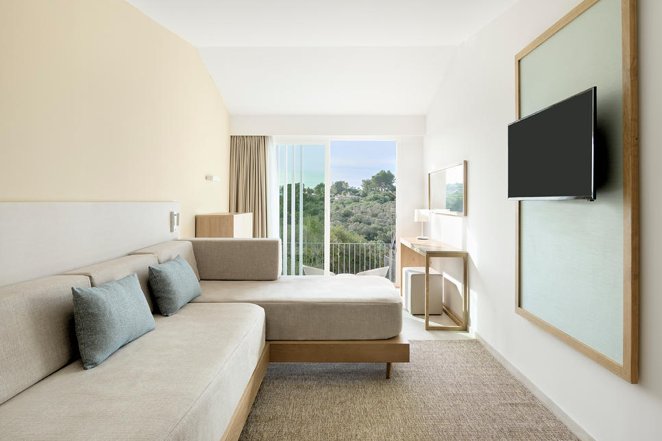 (env. 46-50 m²), 1 chambre (1 lit double ou 2 lits individuels), 1 salon (1 canapé-lit, porte communicante), air conditionné, minibar*, Wifi, TV, téléphone, coffre-fort*, douche, sèche-cheveux, miroir cosmétique, WC, terrasse, vue jardin.