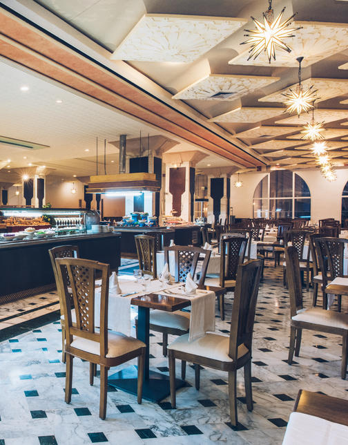2 restaurants avec service à table : restaurant à thème « Raihan Tunisian » cuisine locale (pour dîner, sur réservation), restaurant à thème « Narcisse » cuisine italienne (pour dîner, sur réservation)