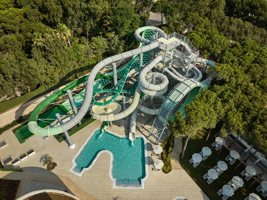 6 piscines (eau douce), dont piscine d’activité, piscine de relaxation, piscine avec toboggans aquatiques