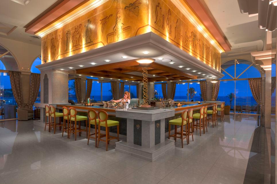 3 bars dont bar à la plage : « Poseidon », bar-piscine : « Oasis », loungebar : « Mythos »