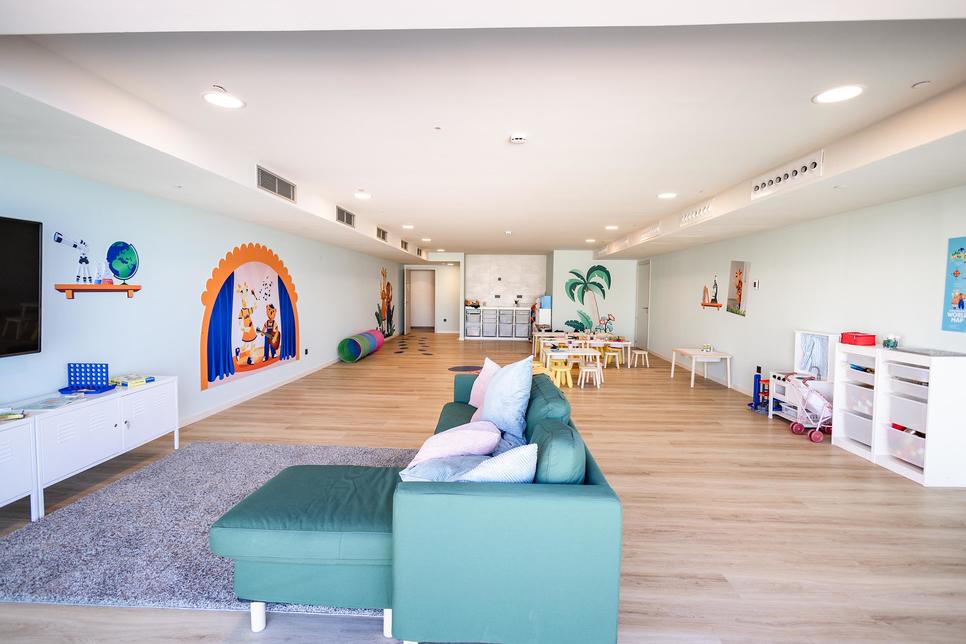 aire de jeux, 1 bassin pour enfants (chauffé), 1 Splashpool (jeux aquatiques, avec toboggan), lit bébé* (sur demande)