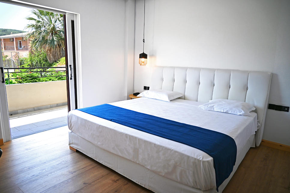(env. 25 m²), rénovée en 2025, 1 lit king size, air conditionné, Wifi, TV, téléphone, coffre-fort, nécessaire à thé/café, petit réfrigérateur, chauffage (selon saison), douche, sèche-cheveux, miroir cosmétique, peignoir, nécessaire de bain, WC, vue mer, fer et planche à repasser, bouteille d’eau à l’arrivée.