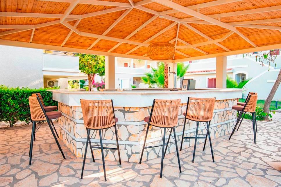 4 bars dont bar à la plage : « Sunset », bar-piscine : « Infinity », lobby-bar : « Dialynas », snack-bar, certains avec terrasse, vue mer, terrasse panoramique